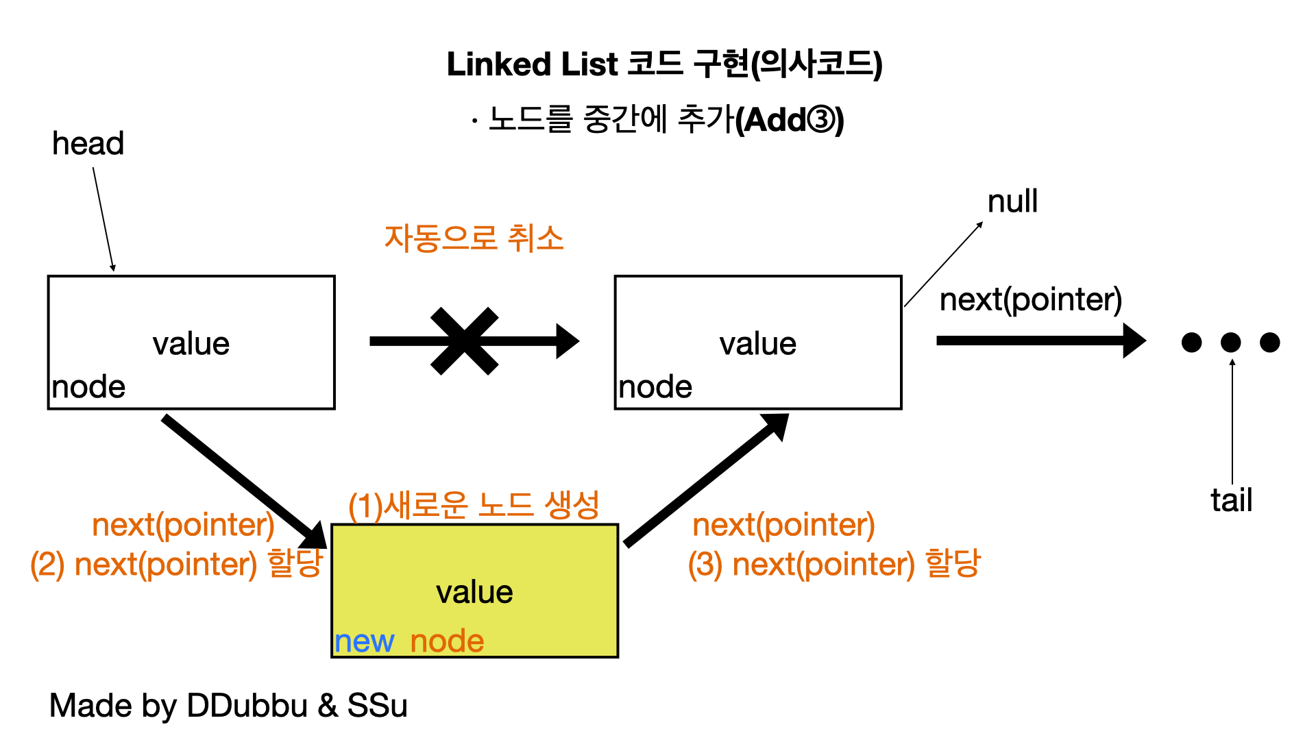 head와 tail의 ‘위치’ 그리고 next(다음노드)는 무엇인지 추가할 때는 어디를 이어 붙여야 하는지, 삭제할 때는 어디를 어떻게 이어야 하는지